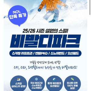 번개비발디파크 스키 리프트 5시간 + 오션월드50% 할인쿠폰