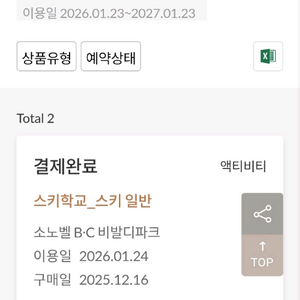 1/24 소노벨 비발디파크(홍천) 스키학교 스키 처음반 이용권 4인 판매합니다.(5대1강습)