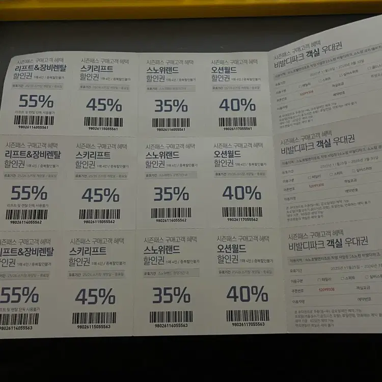 비발디파크 스키장 할인권 리프트 객실 장비렌탈 쿠폰북