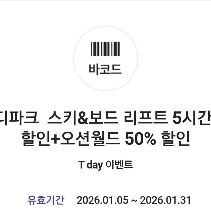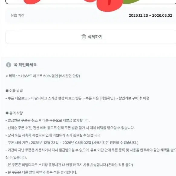 번개비발디파크 스키장 리프트 50% 할인 쿠폰