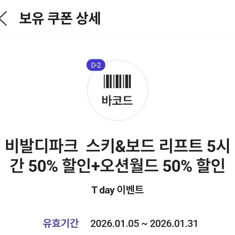번개비발디파크 스키리프트,렌탈 50프로 할인권
