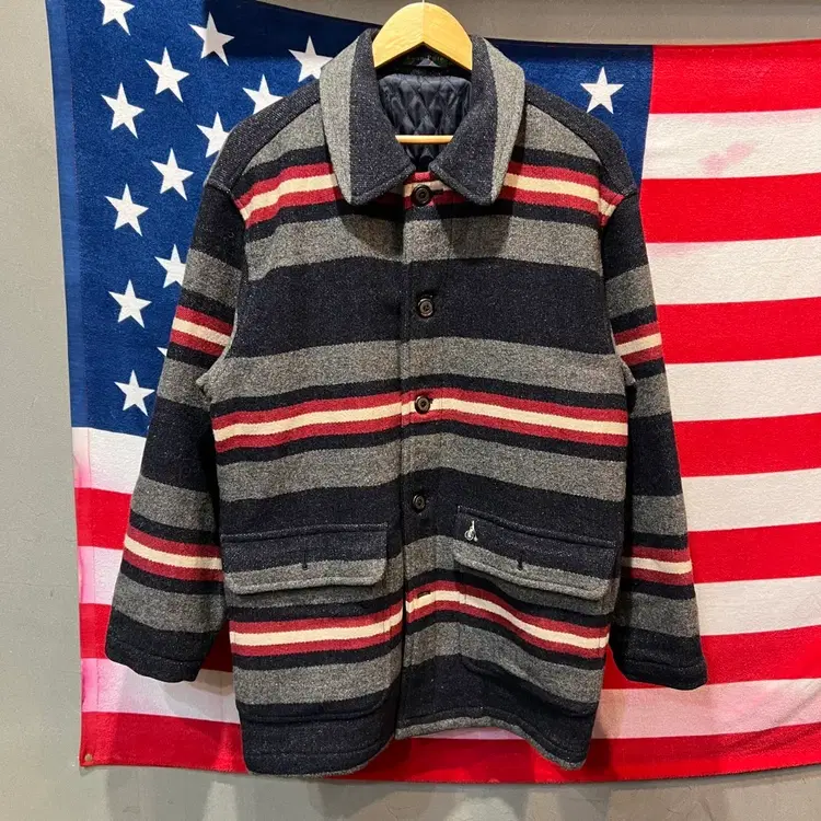 번개빈폴 스트라이프 패턴 코트
