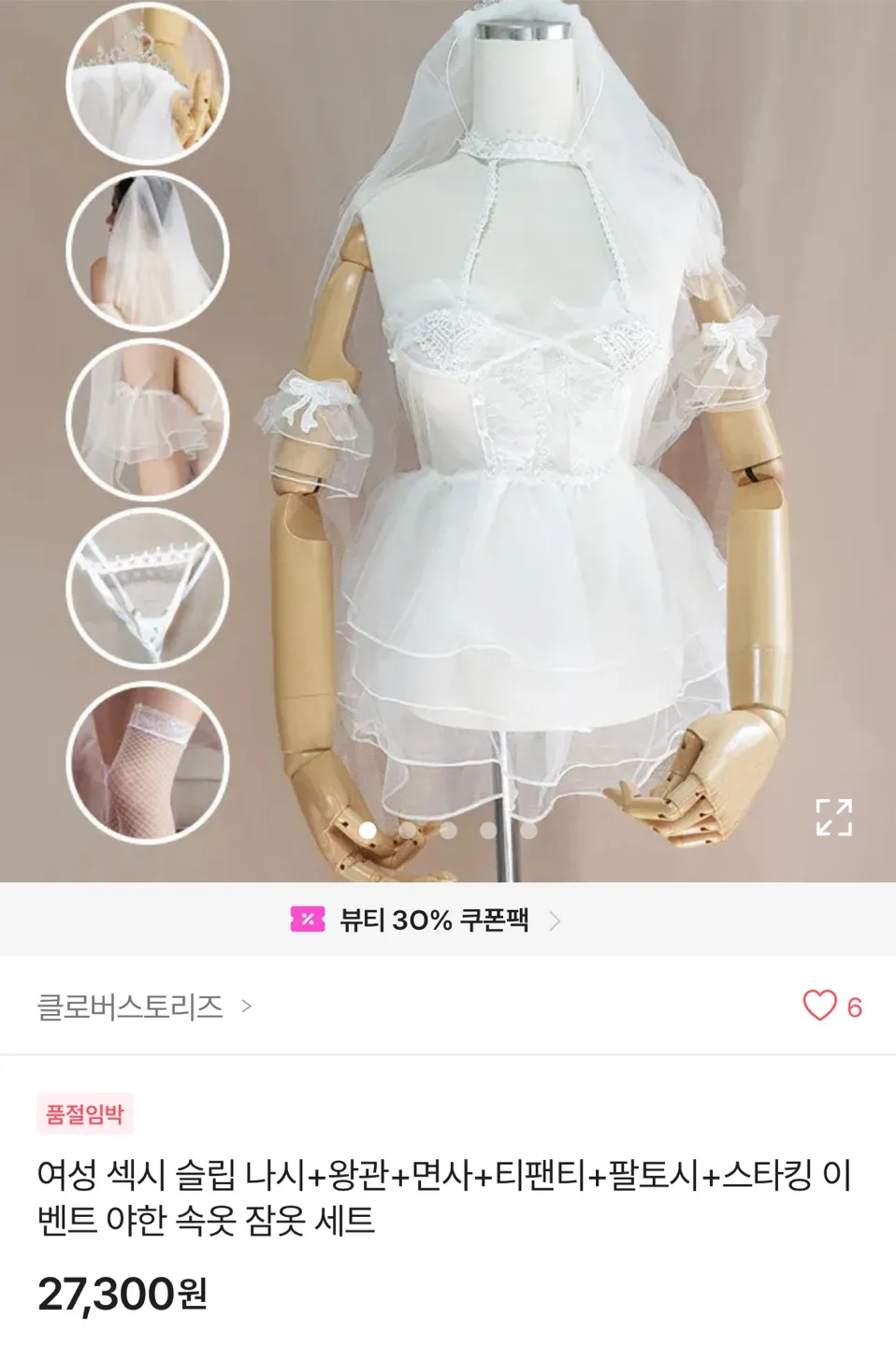 당근새상품) 코스프레 이벤트 할로윈 여성 섹시 슬립 나시 왕관 면사 티팬티 팔토시 스타킹 속옷 잠옷 세트 망사 방송