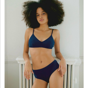 오프닝 5pening 오가닉 코튼 이지 브라 팬티 (브라렛2+패드2, 브리프1) 네이비 베이지 /택포 속옷 언데웨어