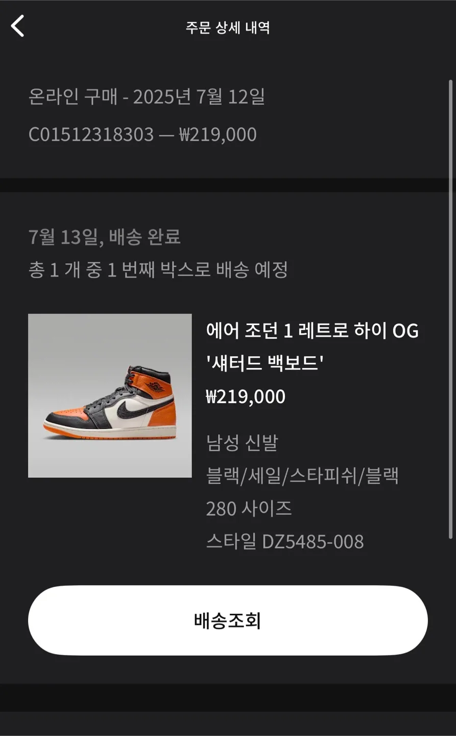 당근나이키 에어 조던 OG 쉐터드 백보드 280 미사용