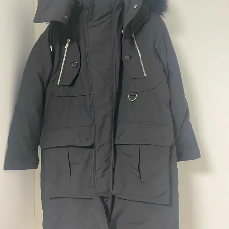 번개송지오 블랙 롱 패딩 폭스퍼 후드