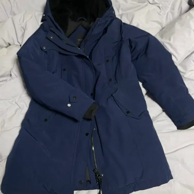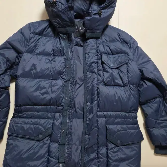 지오송지오 구스다운 블루그레이 집업 후드 패딩 점퍼 롱패딩