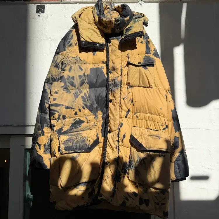 번개Songzio 옐로/블랙 타이다이 덕 다운 패딩 자켓 110