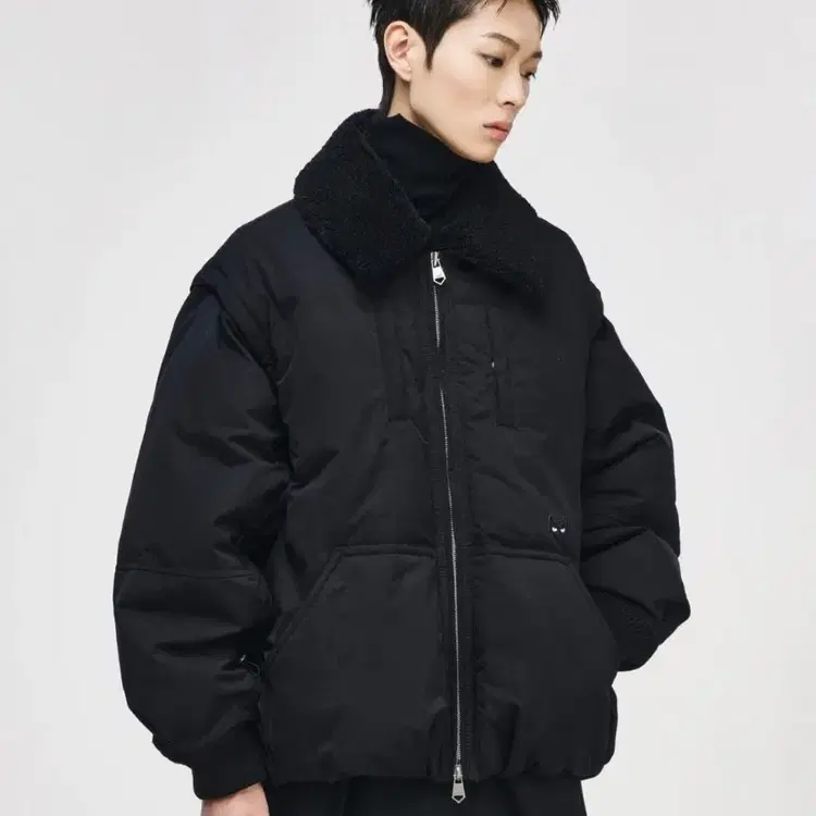 번개송지오옴므 양가죽 배색 패딩 100