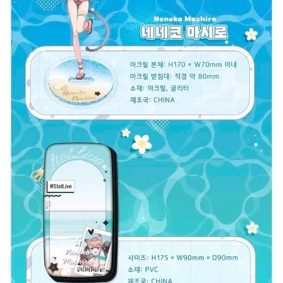 번개스텔라이브 2025 서머 굿즈 네네코 마시로 세트 팝니다.