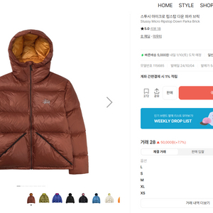 스투시 마이크로 립스탑 다운 파카 패딩 S 브릭