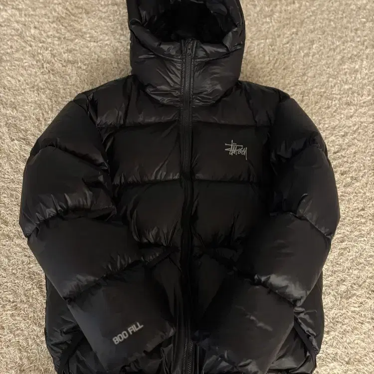 스투시 패딩 미드웨이트 후드퍼퍼 블랙m