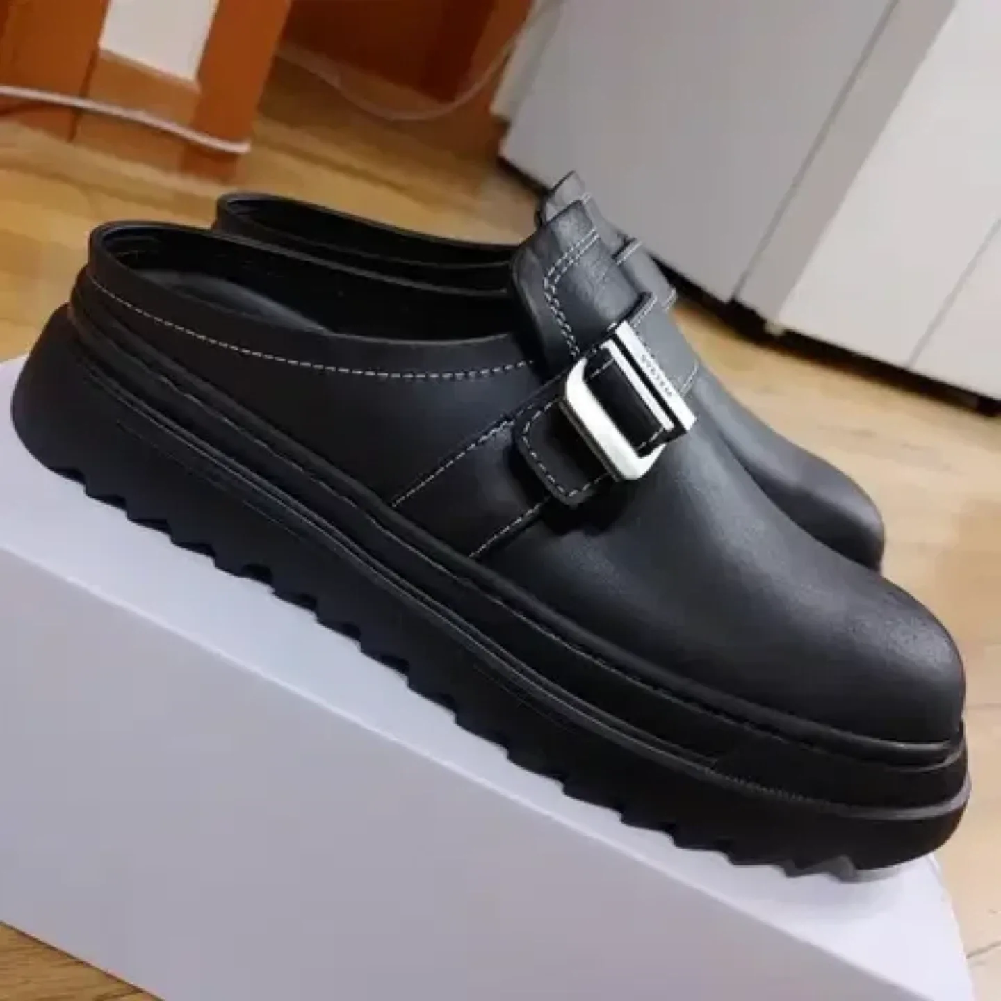 당근시스템옴므 소가죽 버클 벨크로 블랙 뮬