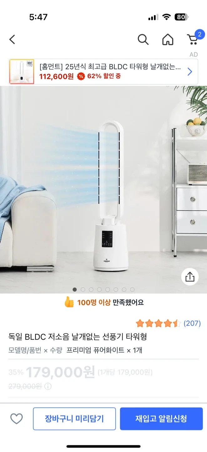 당근독일 BLDC 날개없는 타워형 선풍기