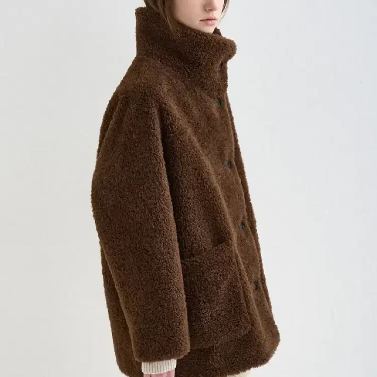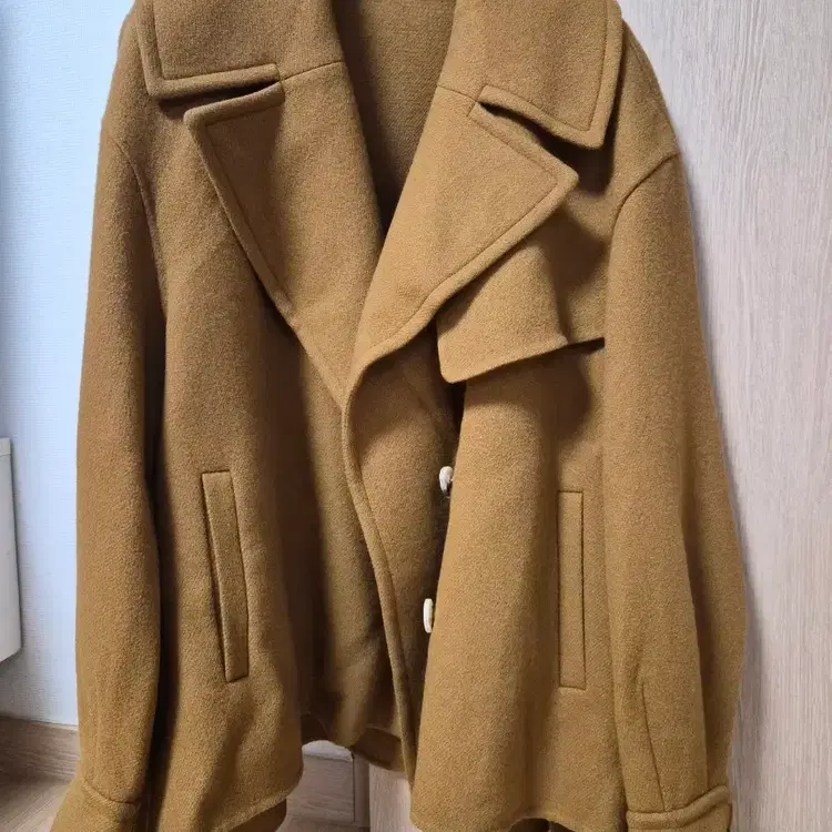 번개시스템 카멜 브라운 모직 숏 코트