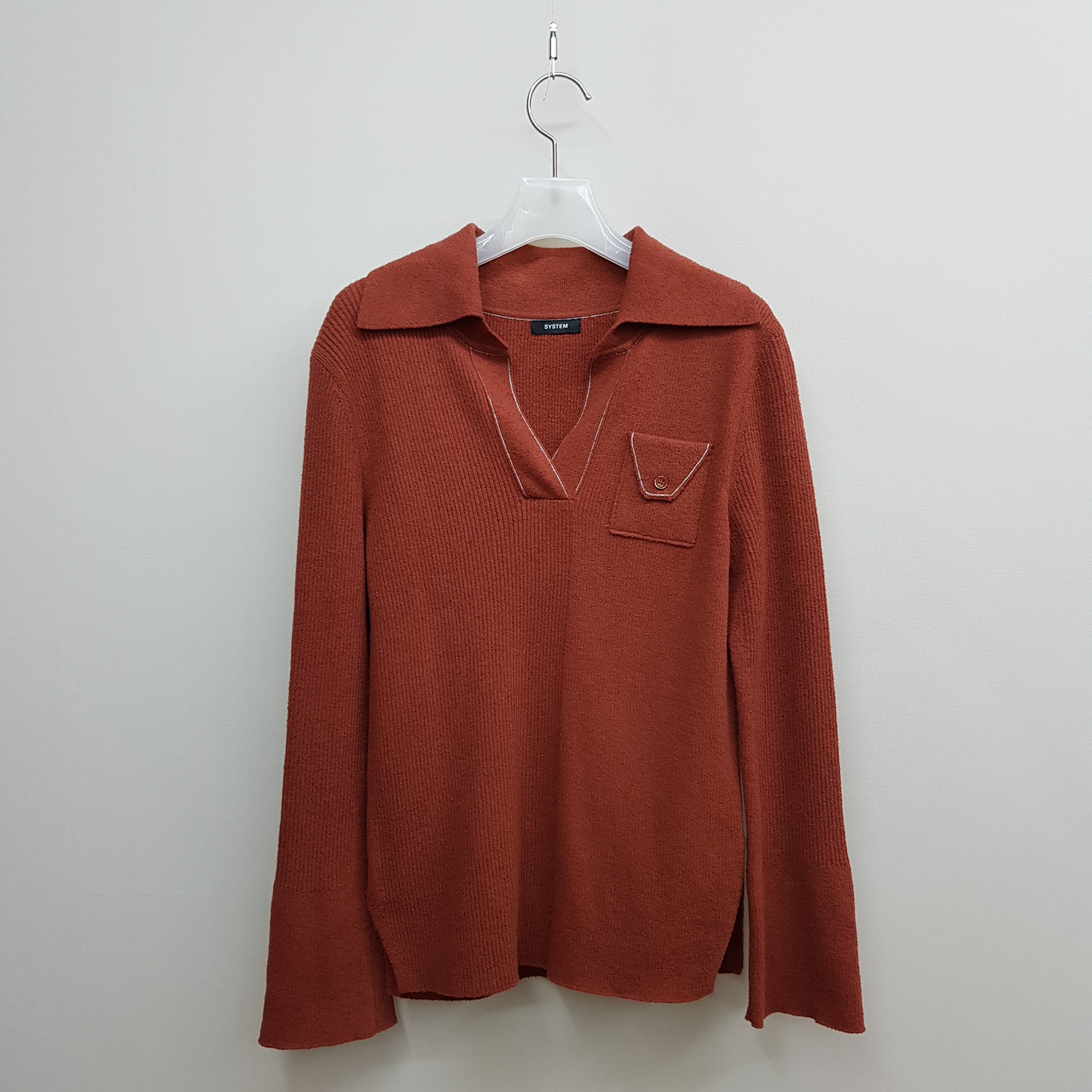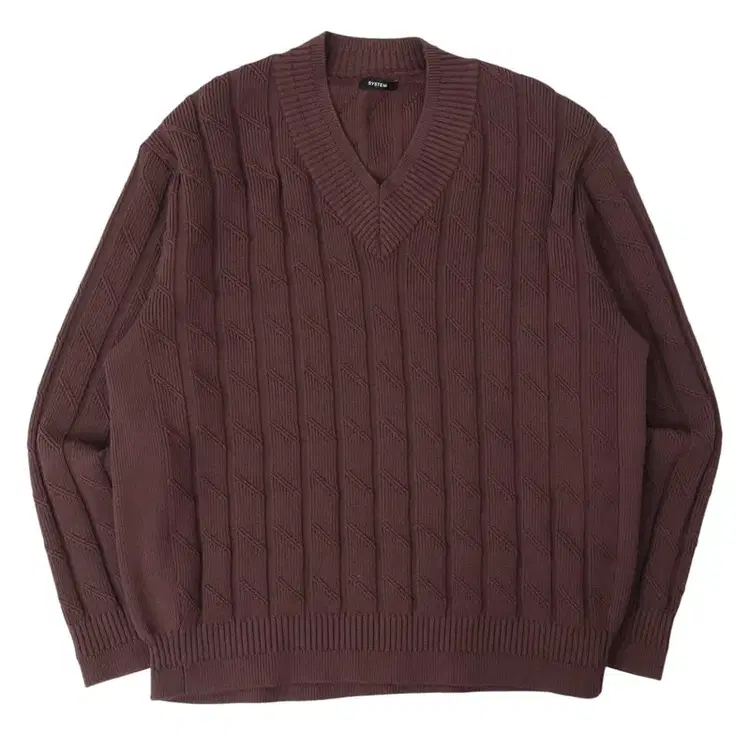번개시스템 23ss 브라운 케이블 브이넥 니트
