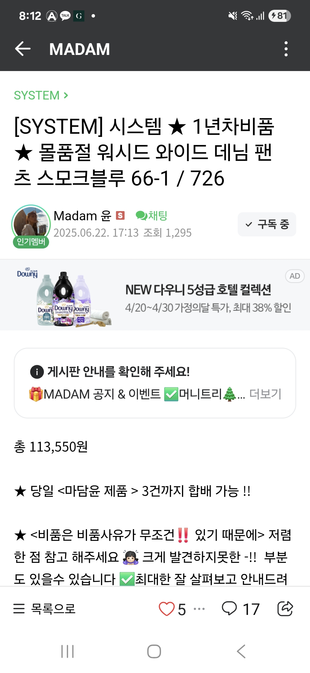 번개시스템옴므 데님 86사이즈