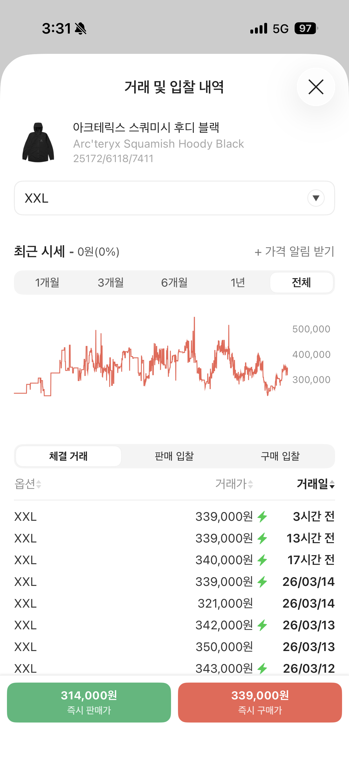 번개[당일출고,L사이즈] 아크테릭스 스쿼미시 바람막이