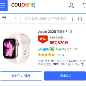 번개애플워치 Series 11 42mm 로즈골드 풀박스