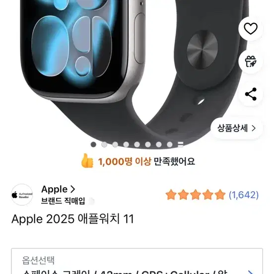 번개애플워치 11 스페이스 그레이 42mm 셀룰러