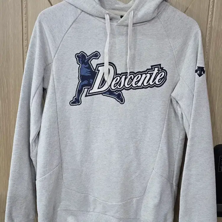 번개데상트 야구 로고 후드티 그레이