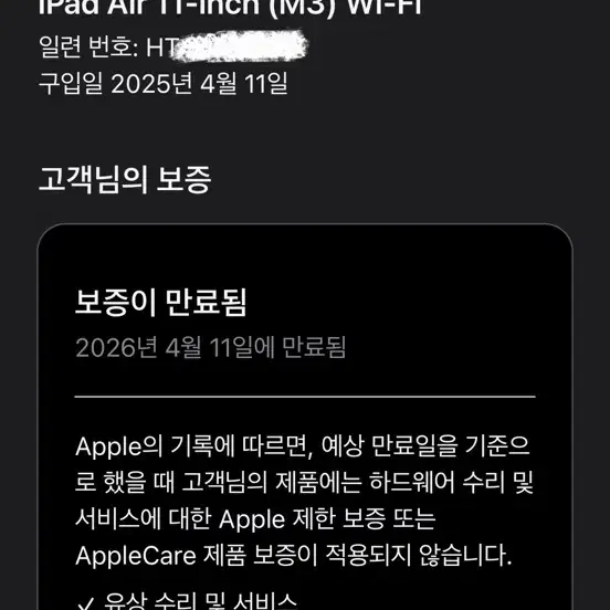번개(애플케어플러스) 아이패드 프로 11 4세대 m2
