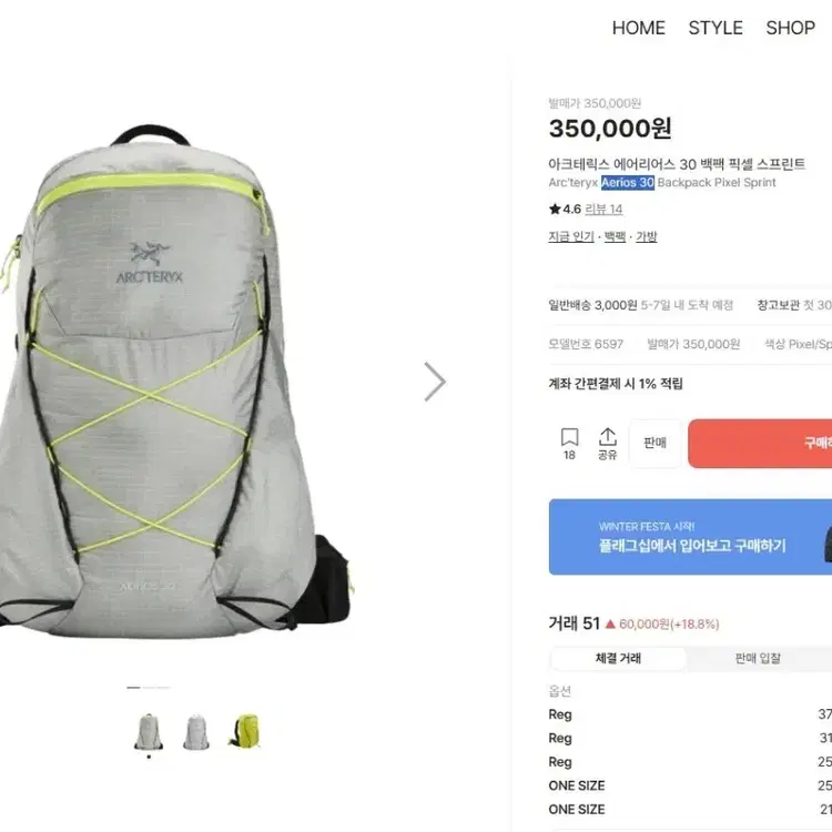 번개아크테릭스 에어리어스18 백팩
