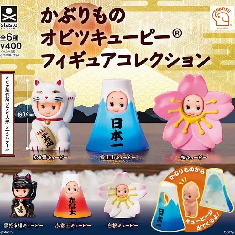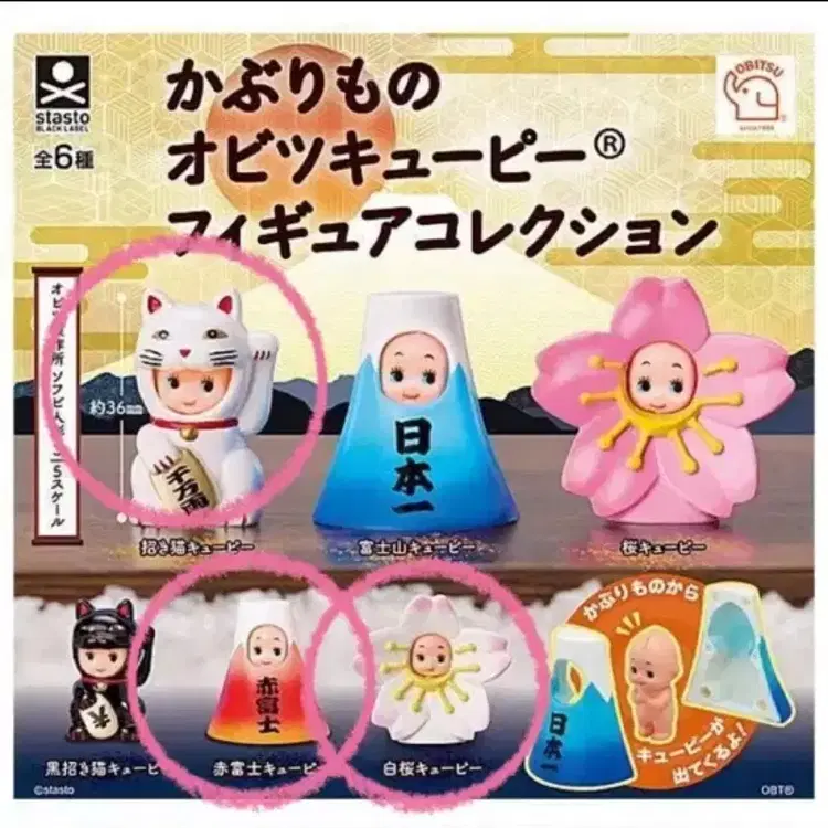 번개카부리모노 오비츠 큐피 피규어 3종 (마네키네코,후지산,벚꽃)