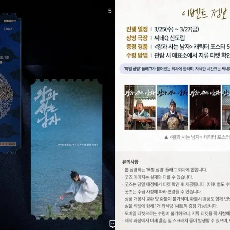 번개구함) 씨네큐 왕사남 a버전 왕과 사는 남자 스페셜 티켓