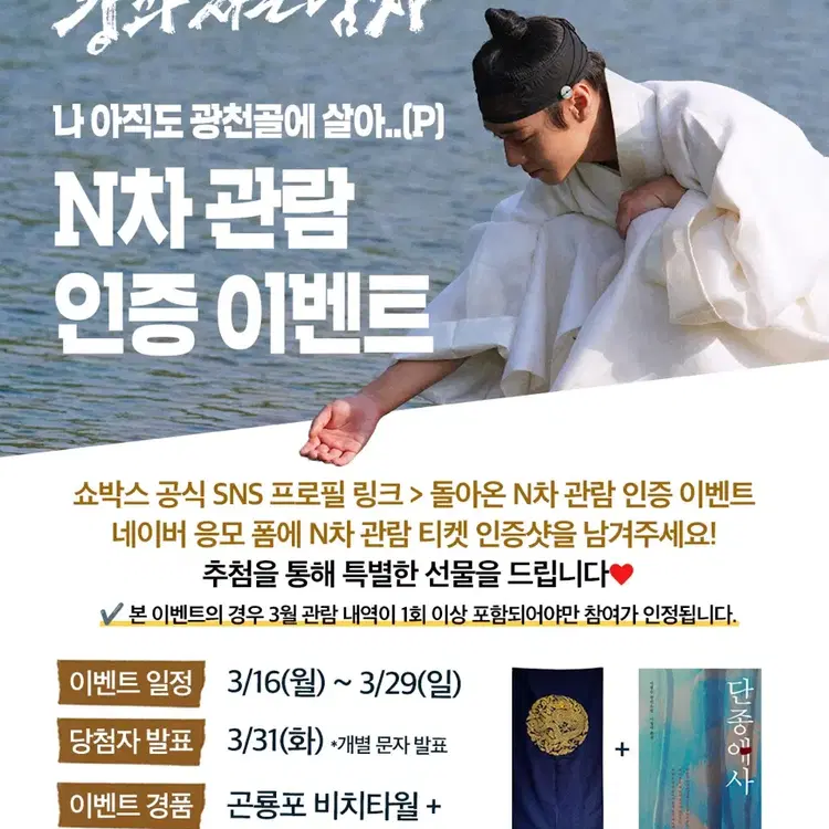 번개왕과 사는 남자 왕사남 강가포스터 7주차 특전 박지훈 단종