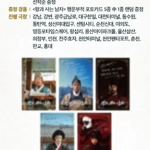 번개영화 왕과사는남자 cgv 특전 행운카드 행운부적 포카 박지훈