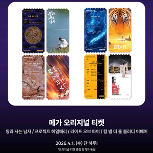 메가 오리지널 티켓 메가박스 만우절 특전 왕과사는남자 라이프오브파이 헤일메리 킬빌