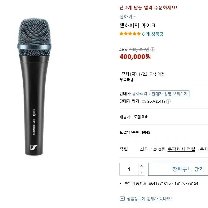 번개새상품) 젠하이저 E945 다이나믹 마이크 팝니다