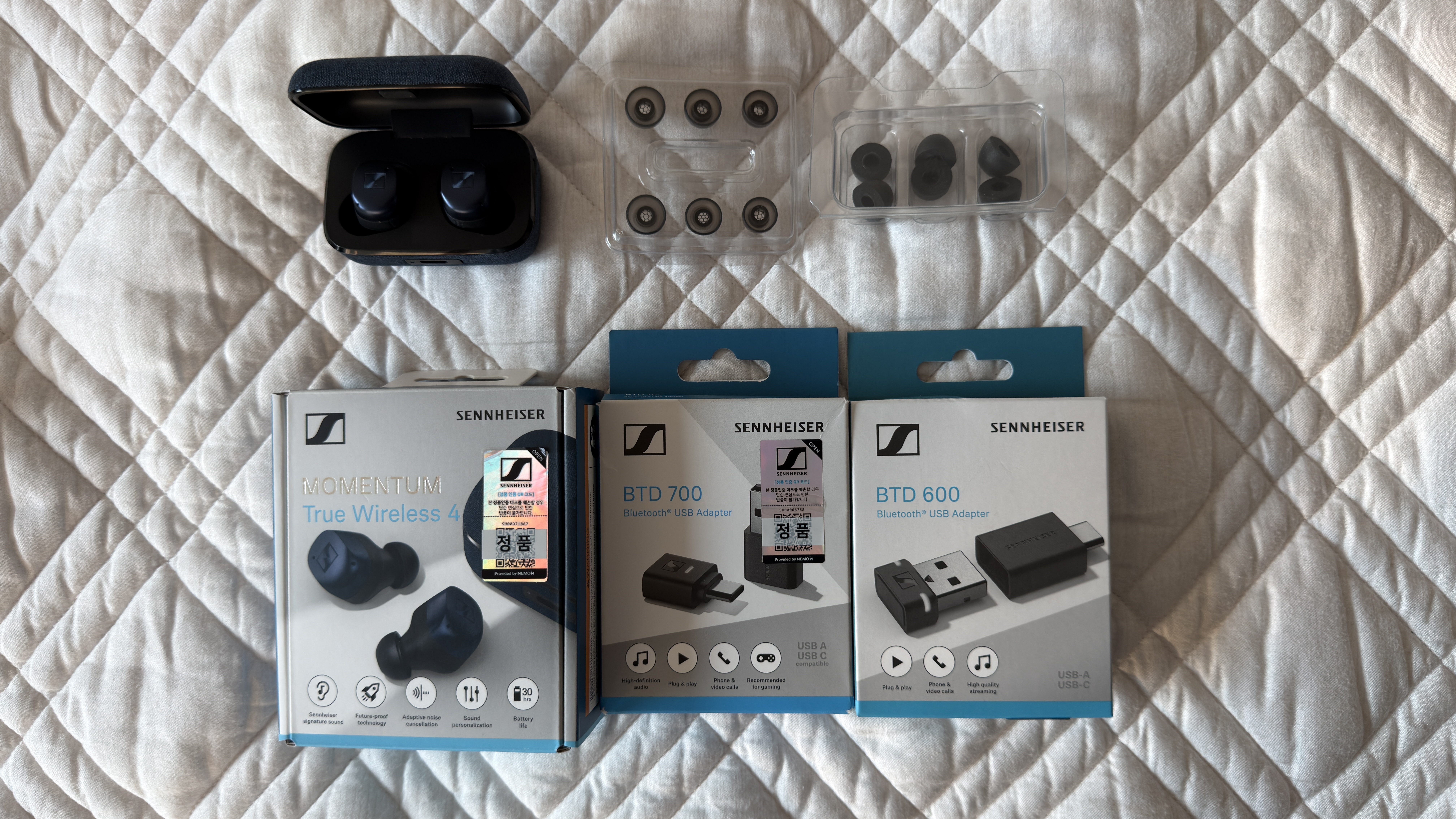 플리[S급/일괄] 젠하이저 모멘텀 트루 와이어리스 4 (MTW4) 데님 + BTD700/600 동글 + 프리미엄 이어팁 2종 풀세트