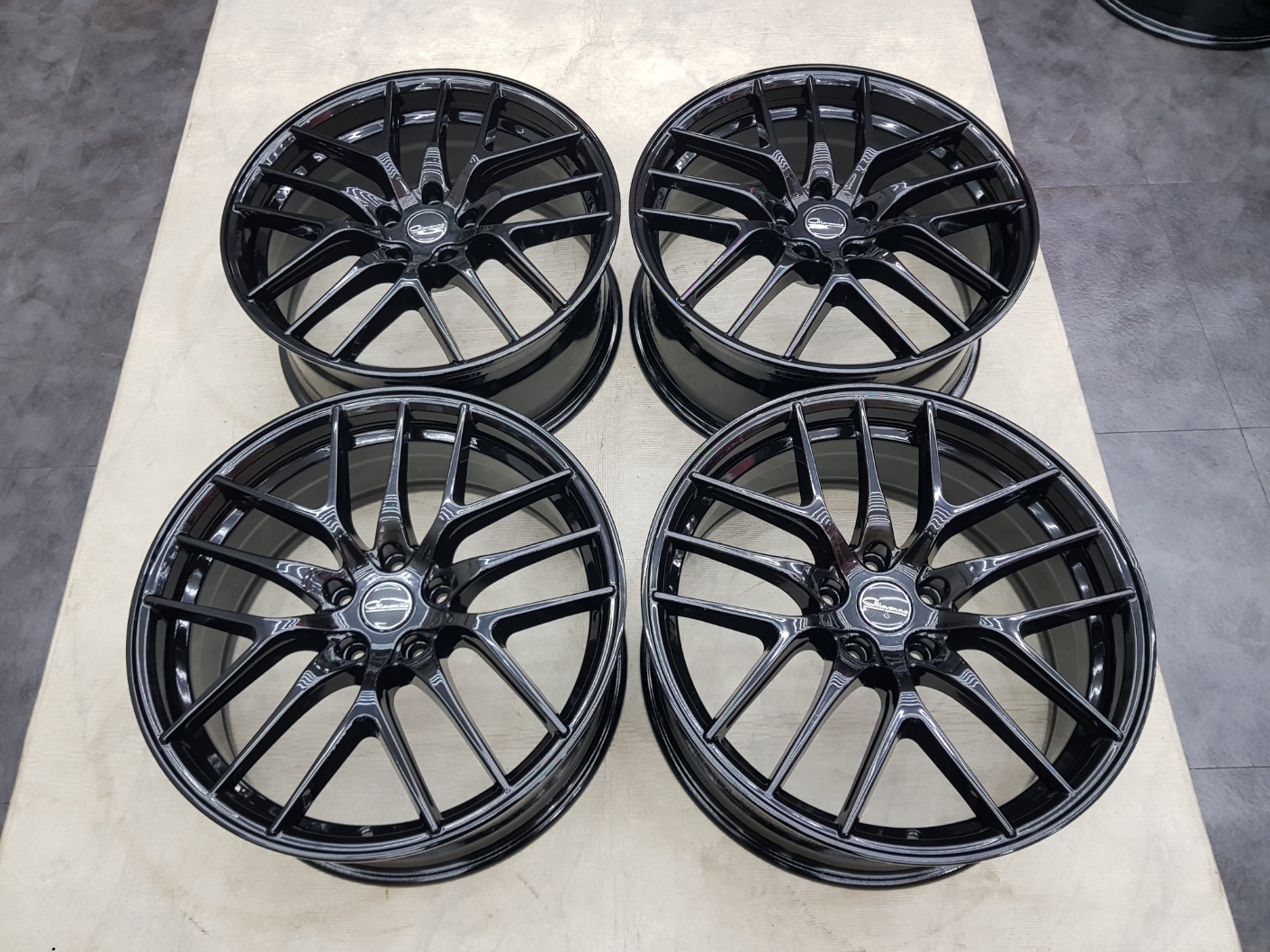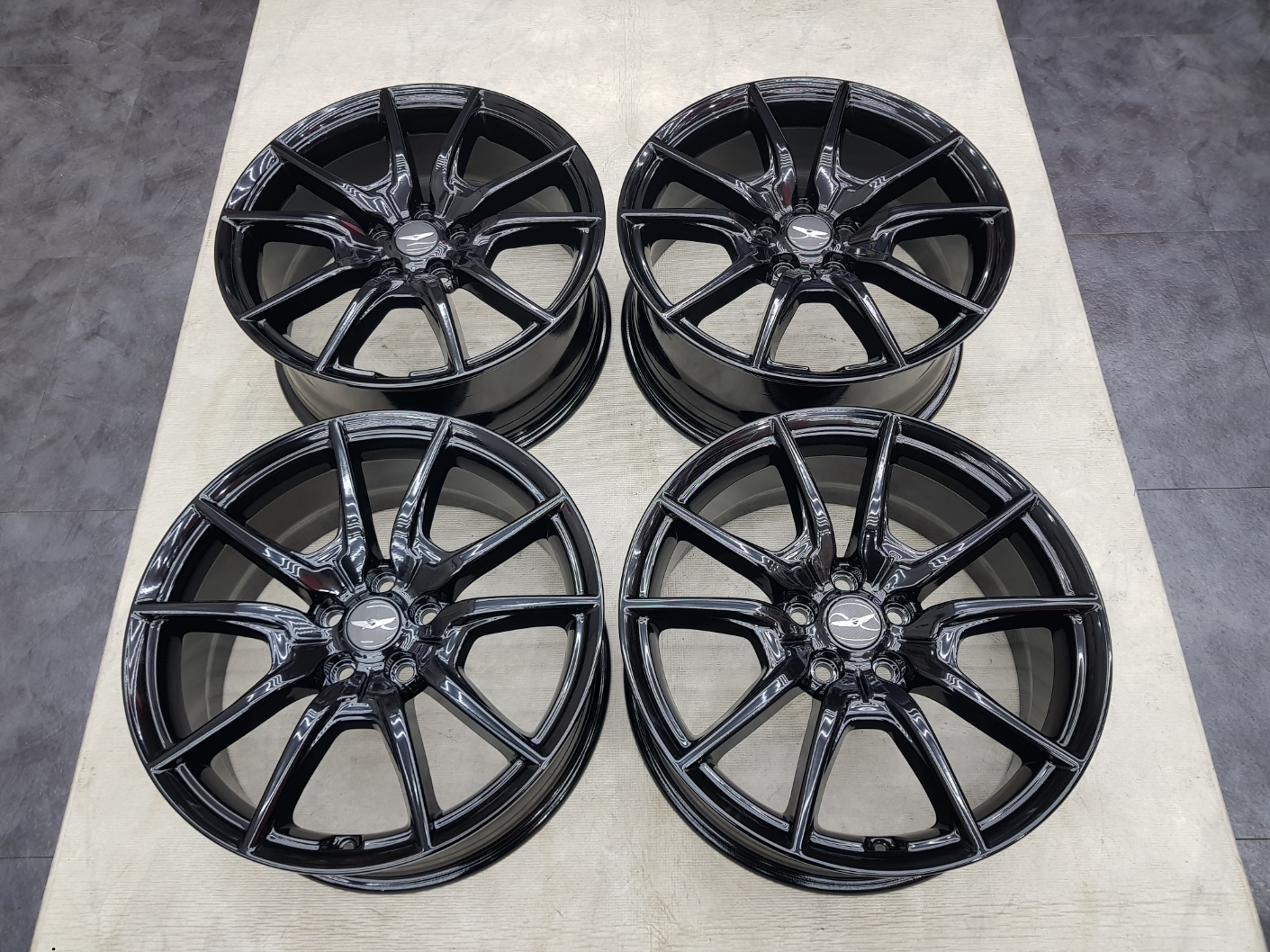플리19인치 대만산 경량휠 지오바나 F204 플로포밍 블랙 분체 도장 중고휠 팝니다 카니발 싼타페 쏘렌토 그랜저