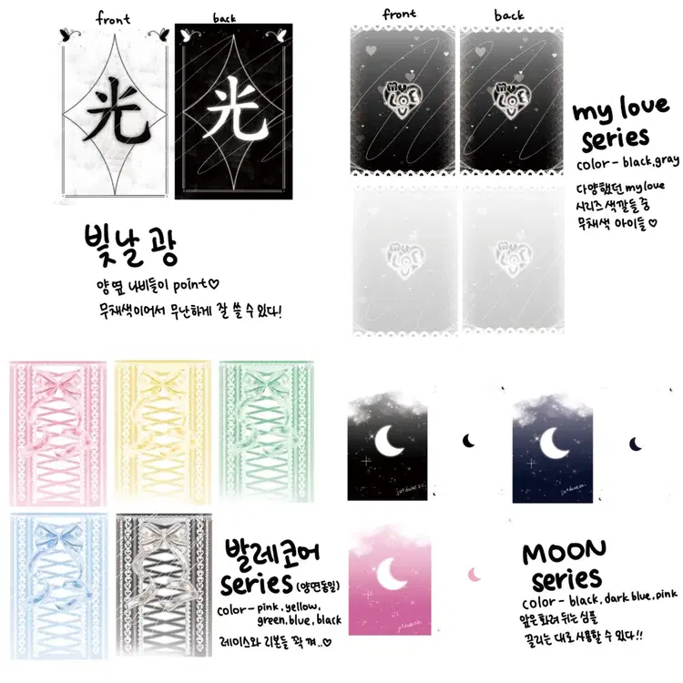 번개무채색 리본과 하트 바인더 대지 포토카드 덕질용품 양면 바인더대지