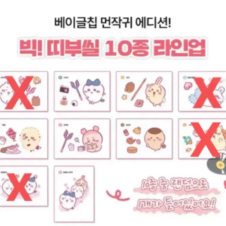 먼작귀 치이카와 빅띠부씰 5개일괄 4종류 하치와레 모몽가 쿠리만쥬