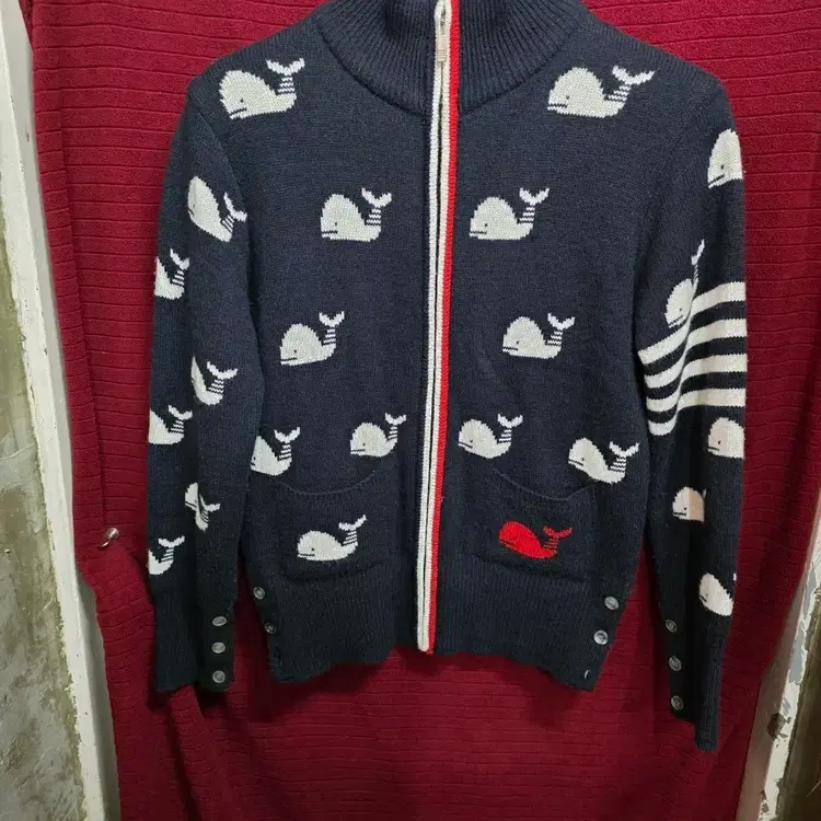 번개[100]톰브라운(Thom Browne)고래 패턴 지퍼 가디건. 명/3
