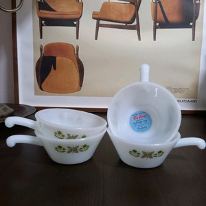 [미사용품]빈티지 앵커호킹 핸들 스프 볼 (커스타드 볼), 파이어 킹