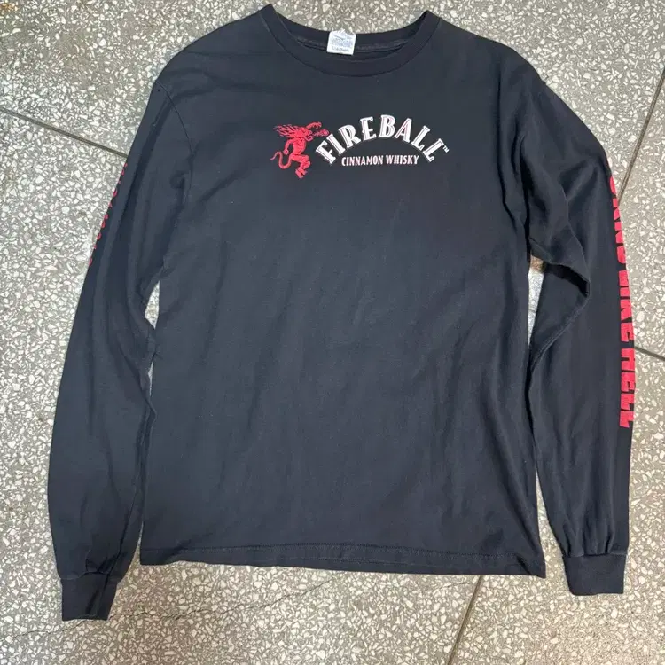 번개Delta 빈티지 파이어볼 시나몬 위스키 프린팅 롱슬리브 블랙