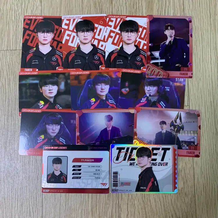 번개t1 티원 페이커 faker 굿즈 일괄 라네즈 유니폼키링 명전포카 등등