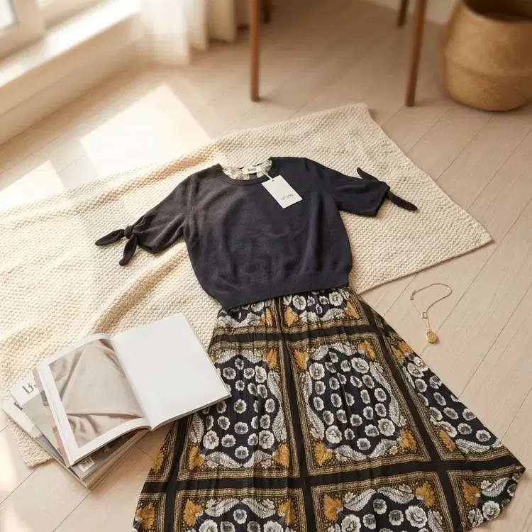 번개산드로 페이즐리 반다나 플리츠 원피스 34사이즈