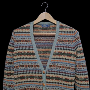 번개여성 레어 폴로 울 램스울 페어아일 긴팔 가디건 니트 스웨터 브이넥