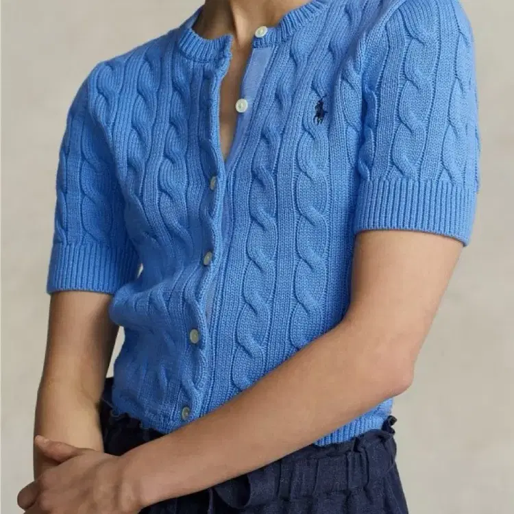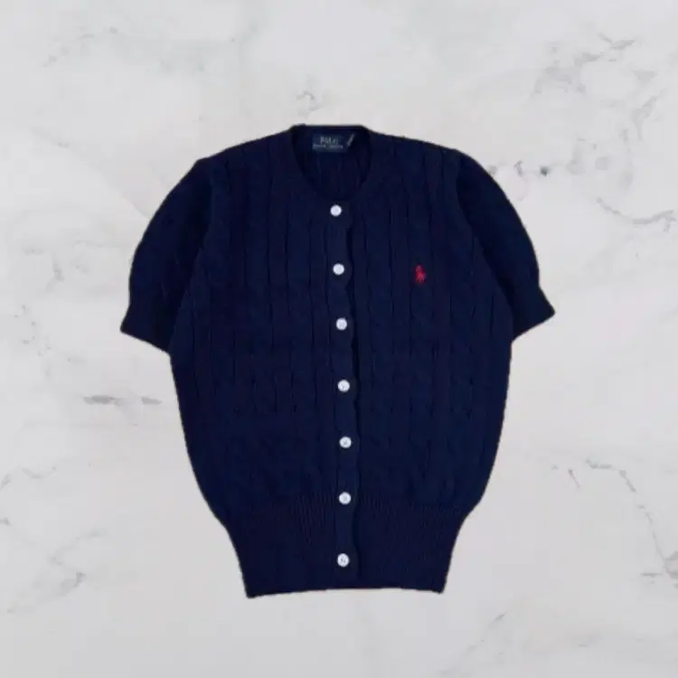 번개[새상품] 폴로 케이블니트 숏 슬리브 가디건 서필드 블루 M