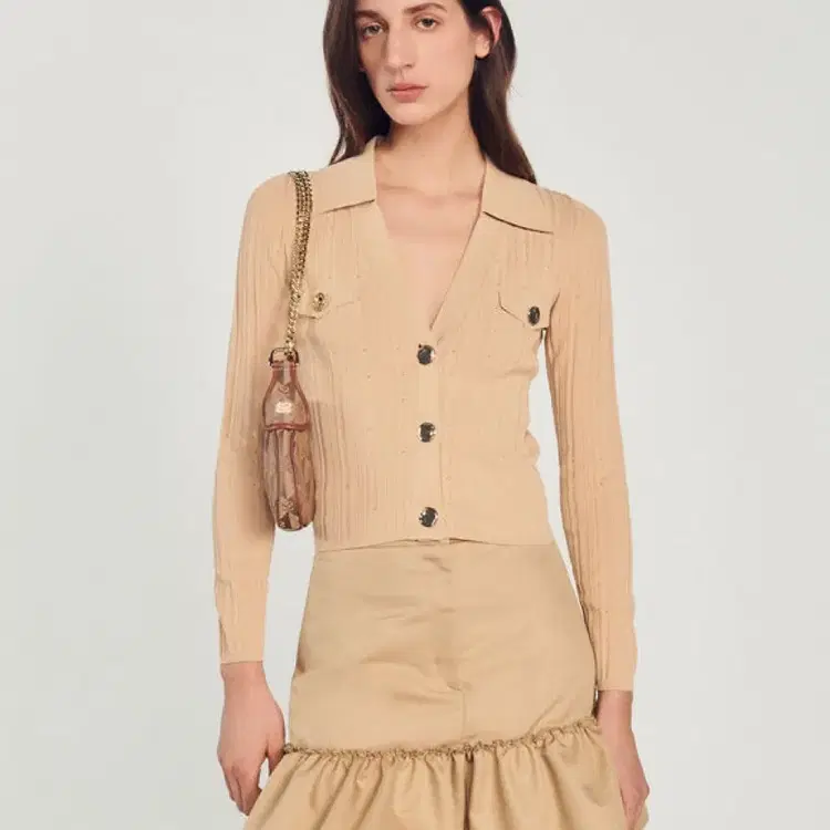 번개(단종템) SANDRO 산드로 베이지 폴로넥 크롭 가디건 SIZE 0