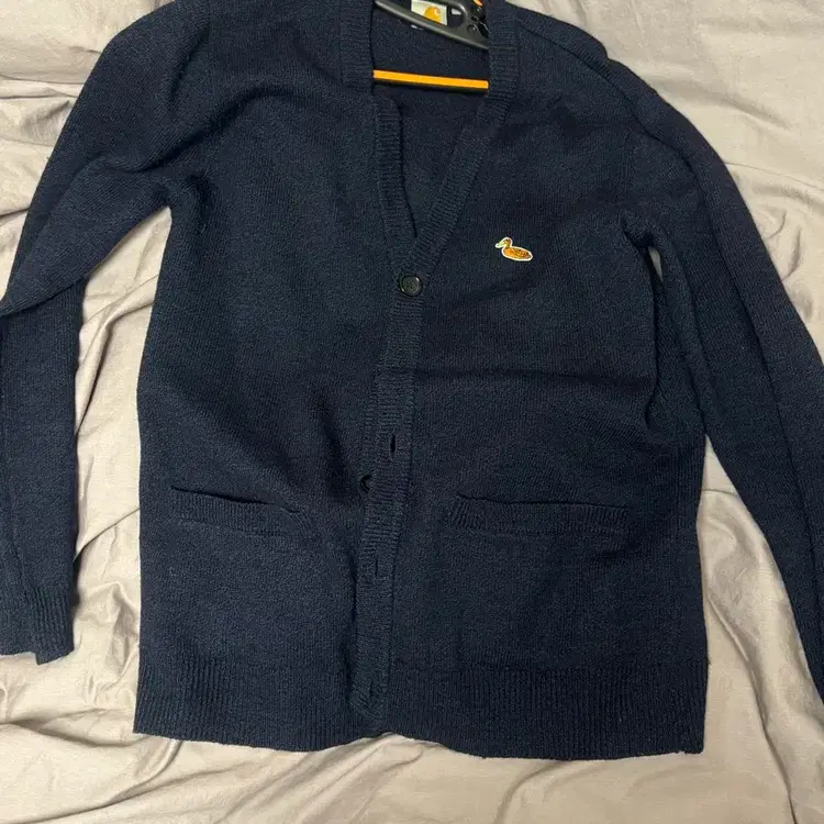 번개칼하트 니트 가디건 네이비 폴로 브이넥