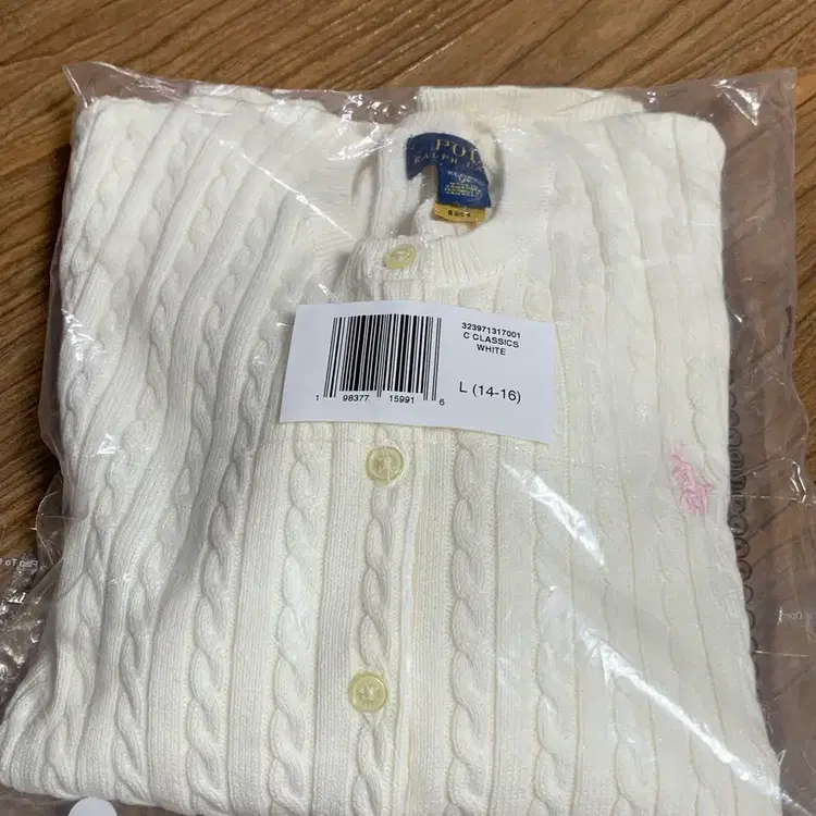 번개새상품) 폴로 걸즈 케이블 니트 가디건 웜화이트 xl