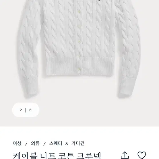 번개[마지막 가격인하] 폴로 케이블 니트 코튼 크루넥 가디건