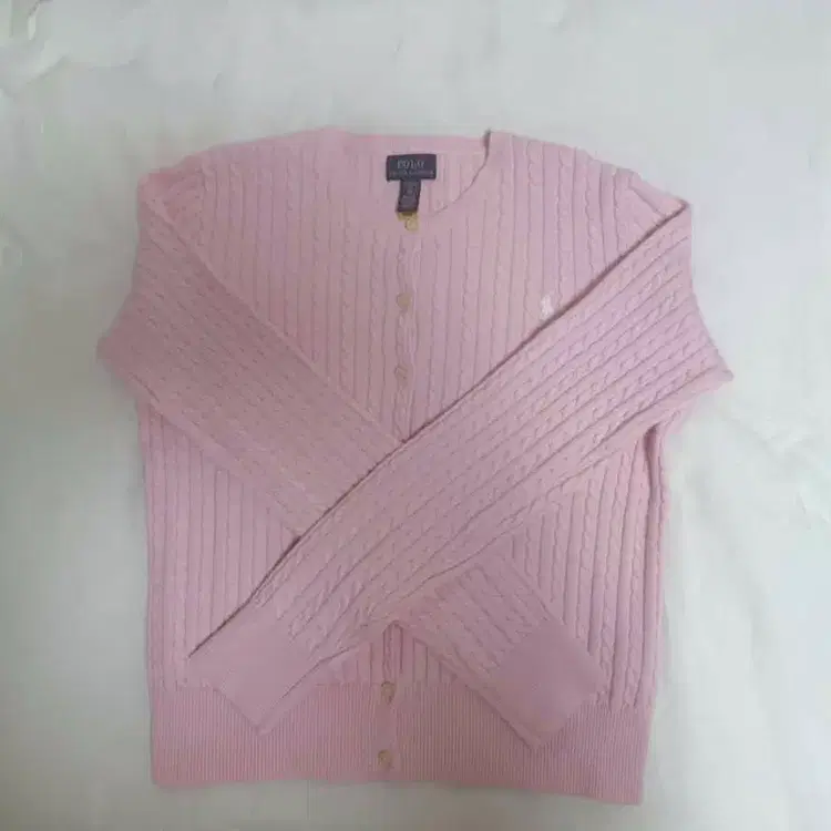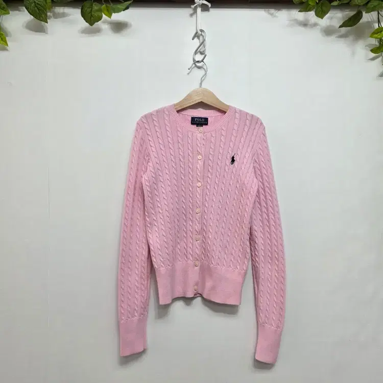 번개폴로 랄프로렌 케이블 니트 가디건 핑크