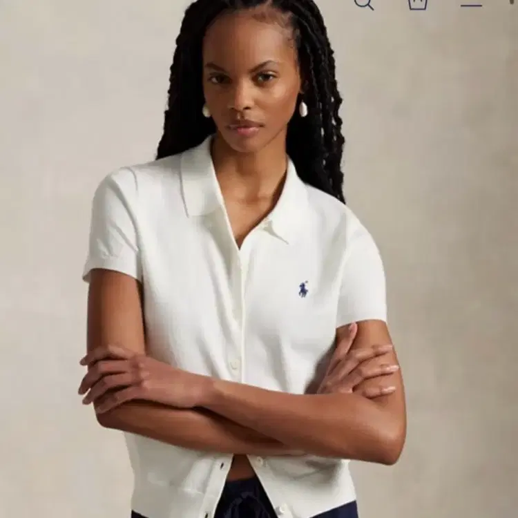 번개폴로 랄프로렌 반팔 가디건 아이보리